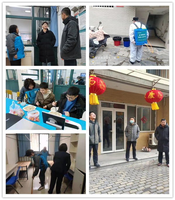 “让留校学生实现‘优居’,我们须细心温馨服务,共同打造生活之家!”根据每日留校学生的人数变化情况,公寓宿管员24小时在岗,并每天主动与留校学生进行问候或交谈,利用这短暂接触,获取并关注留校学生的生活和情绪状态。同时,为认真落实学校疫情防控工作要求,总务人深度清洁出房间和床位,将200余名留校学生安排在南湖校区梅苑1号、兰苑1-3号四栋楼集中住宿。假期,总务人认真履行疫情防控主体责任,时刻紧绷疫情防控“弦”,增强风险意识、底线思维、协同观念,切实做好了学生公寓楼的各项疫情防控工作:各公寓楼做好规范化的防疫事项培训,配备充足的防疫物资,严格落实进出人员登记制度,每天对在岗人员进行信息核实,体温监测,健康码、行程码核验等工作。同时,消杀人员每天上下午两次对门厅、走廊、卫生间、生活服务室等公共区域进行定时、定点的全方位、无死角、立体式地做好清洁消杀、通风及记录工作,确保留校学生生活安全。为营造校园喜庆、欢乐、祥和的春节氛围,大年二十八上午,各栋学生公寓张贴春联福字;除夕夜,宿管员、值班维修员、秩序维护员和留校学生一起煮饺子,共度除夕,让未回家的学生在学校公寓也一样感受到家人般的温暖,温馨的氛围驱散了一颗颗回不了家的孤单心。