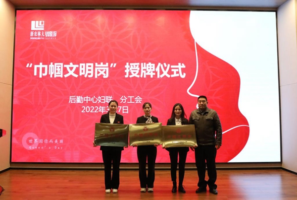 3月7日,在第112个“三八”妇女节来临之际,浙江农林大学后勤服务中心“巾帼文明岗”授牌仪式暨女性健康知识讲座在学3国际会议厅举行。校妇联副主席、校工会副主席郭爱枝,后勤中心党委书记郑本军出席仪式,后勤中心总经理助理、分工会主席李昱飞,党政办主任、妇联主席俞月华分别主持各阶段活动。