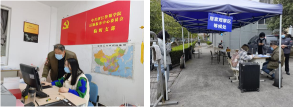 一个支部就是一座堡垒,一名党员就是一面旗帜,疫情防控工作开展到哪里,党旗就飘扬在哪里!2020年2月抗击新冠肺炎疫情期间,为落实好校园疫情防控工作,后勤服务中心党委决定组建医学隔离区筹备组,17名党员第一时间提交请战书。4月底学校复工复学后,医学隔离区正式启用,来自钱塘、桐乡两校区后勤各条战线的15名党员干部迅速集结,成立医学隔离区临时党支部,始终让党旗在疫情防控第一线高高飘扬,让党徽在第一线闪闪发亮,为打赢防控狙击战提供坚强组织保障。