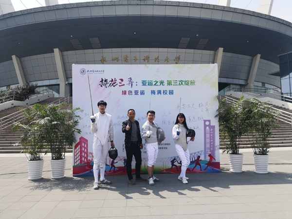 活动现场,体育教学部汤更国老师以理论阐述结合现场示范的方式,为到场嘉宾和学生代表作击剑项目解说,号召大家关注绿色亚运,增强体育运动。在场嘉宾和同学在展板上写下对杭州绿色亚运的祝福。