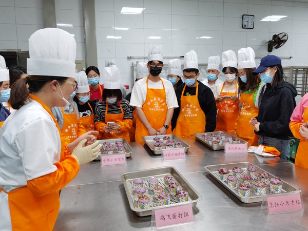 4月9日,浙江农林大学劳动教育试点课程——《大学生烹饪基础教育与实践》第一次烘焙实践课在集中加工中心开课,后勤餐饮中心加工管理部负责人作为主讲教师为学生授课。