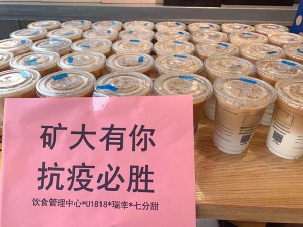 4月11日中午,刚刚完成中国矿业大学全校30000余人核酸检测采样的医护人员收到美食广场一层准备的100份咖啡和奶茶,并带去了暖心的问候:“感谢有你们的守护,你们辛苦了。”对于饮食人的关怀,现场医护人员感动不已。大家纷纷表示,你们送来的是情真意切,暖身更暖心。