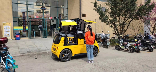 “您的外卖到了,请取餐……”一辆辆无人配送车在校园里有序地穿梭,正“卖力”地工作着。据统计,4月1日至4月9日,先前的6辆无人配送车累计配送订单约12600单,日均超过1400单,相比3月份700单的日均配送订单量翻了一番;连同4月11日投入工作的8辆无人配送车,日均配送订单量超过了4000单;自4月7日起,为进一步减少校内师生的流动,桃苑餐厅一层“彭城菜”窗口在美团外卖APP又上线了“早餐服务”,无人配送车又新增了为师生配送早餐的服务。
