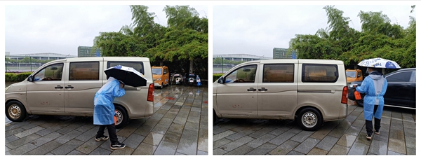 为了最大限度做好疫情防控工作,后勤每天安排人员从清晨6点开始在校门口对所有配送进校的物资和车辆进行消杀,直到中午12点才结束。无论是艳阳高照,还是风里、雨里,江中医后勤人一直都坚守在这里。他们都只有一个目的:不让病毒带入江中医校园里,全力保障好在校师生的生活和学习。