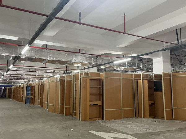 4月14日,笔者来到11栋、13栋、14栋宿舍,只见搬迁公司的师傅们正在紧张地忙碌,学生行李包已经基本搬离完毕,正在对柜子、铁床有序拆卸,分块打包,叠放整齐后用三轮车搬运到库房规范存放。据负责人李师傅介绍,本次宿舍家具搬迁,涉及学生宿舍11、12、13、14栋共计1103间宿舍内的所有家具都将搬离宿舍,时间紧,任务重,从10号开始,公司70多个工人就投入工作,最多的时候100人,采用流水线方式,各项流程都由专人负责,在各个工序节点分批进入工作场地,确保工作效率。工人们不仅白天搬,夜晚也搬,每一间宿舍搬迁后还要打扫干净才交接,以目前工作进度看,10天之内能够完成拆除和搬运工作。