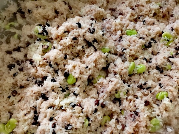 这糯米饭拌合着倭豆(蚕豆)、豇豆和肉块,散发着阵阵香味,好不诱人!丰富饱满的食材相互融合,寓意着食用者一年到头身体健康。还有好吃入味的茶叶蛋,除了美味,教职工们还能根据需要,自助为茶叶蛋穿上“花衣裳”——蛋套笼,这些蛋套笼是由宿管阿姨和同学们共同制作完成的。蛋笼虽小,却寄予着员工和同学们对全校师生的祝福。
