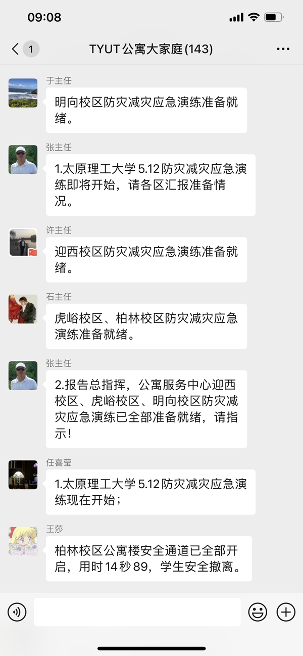 为提高师生的防灾减灾意识,切实加强紧急避险、自救自护和应变能力,共同营造安全、和谐的校园环境,在第14个防灾减灾日来临之际,太原理工大学在四校区学生公寓同时开展防灾减灾应急演练暨集中宣传活动。校党委常委、副校长任喜莹、后勤系统党委书记贺光明、后勤保障处处长师红军、保卫处副处长关宏占出席本次活动,后勤保障处副处长公寓服务中心主任张文基负责协调本次演练工作。公寓服务中心全体职工与部分学生参加演练。本次演练模拟校区所处区域发生地震灾害时的疏散逃生。