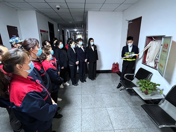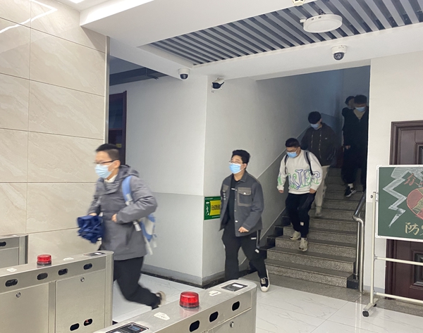 上午9时20分,总指挥任喜莹宣布应急演练开始,三校区47栋公寓楼的公寓人闻令而动,令出行随,按照突发事件应急处置程序,第一时间开启楼宇内所有消防安全门,将所有电梯停运在首层,迅速组织学生疏散逃生,整个演练过程忙而不乱,从容有序,各楼工作人员及时报告疏散情况,总用时1分41秒,达到了良好的预期效果,比往年疏散速度有所提升。