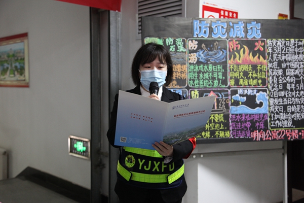 在随后召开的总结会上,公寓职工代表、安全宣讲师王瑜宣读防灾减灾倡议书并带领职工宣誓,立下“防灾减灾,从我践行”的庄严承诺。